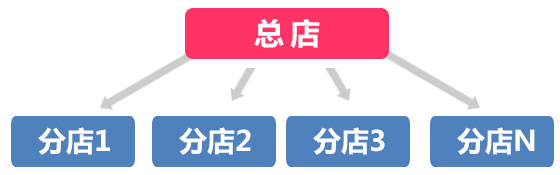分店為虛擬分店,共享了總店的會員、商品和庫存。